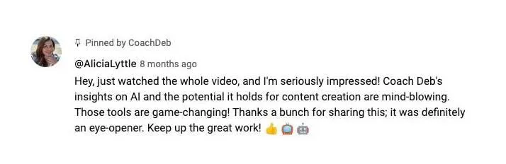 Our book, playbook and templates wouldn't be complete without showing you how CoachDeb uses these A.I. Apps and systems in a full 55 min video training that you can watch at your own pace - with popcorn by your side.